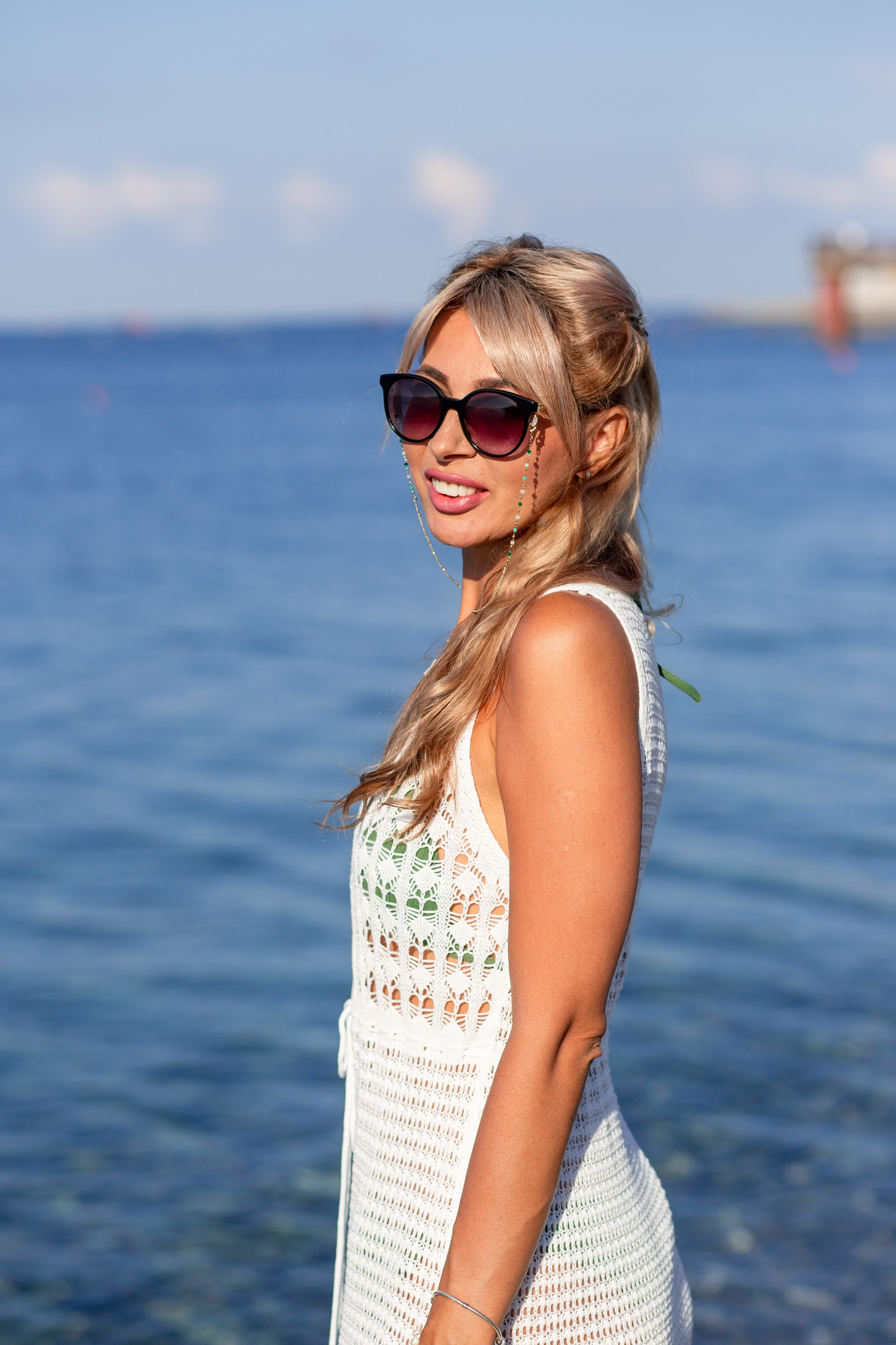 - Красный, нежно-розовый, жёлтый или оранжевый: добавит ярких акцентов и будет выделяться на фоне моря.