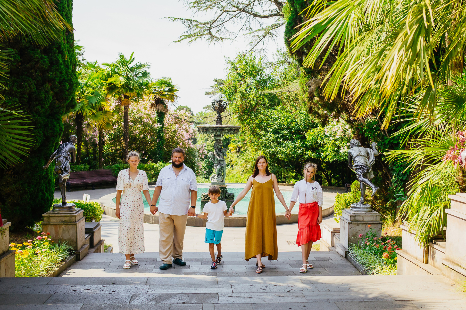 Романтичные прогулки по аллеям, кадры у фонтана или на фоне экзотических растений создадут атмосферу нежности и любви. - Семейная фотосессия