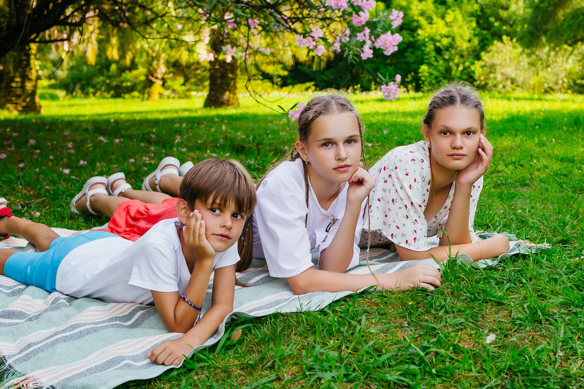 Современные образы на фоне зелени и цветущих растений создадут стильные и динамичные кадры.